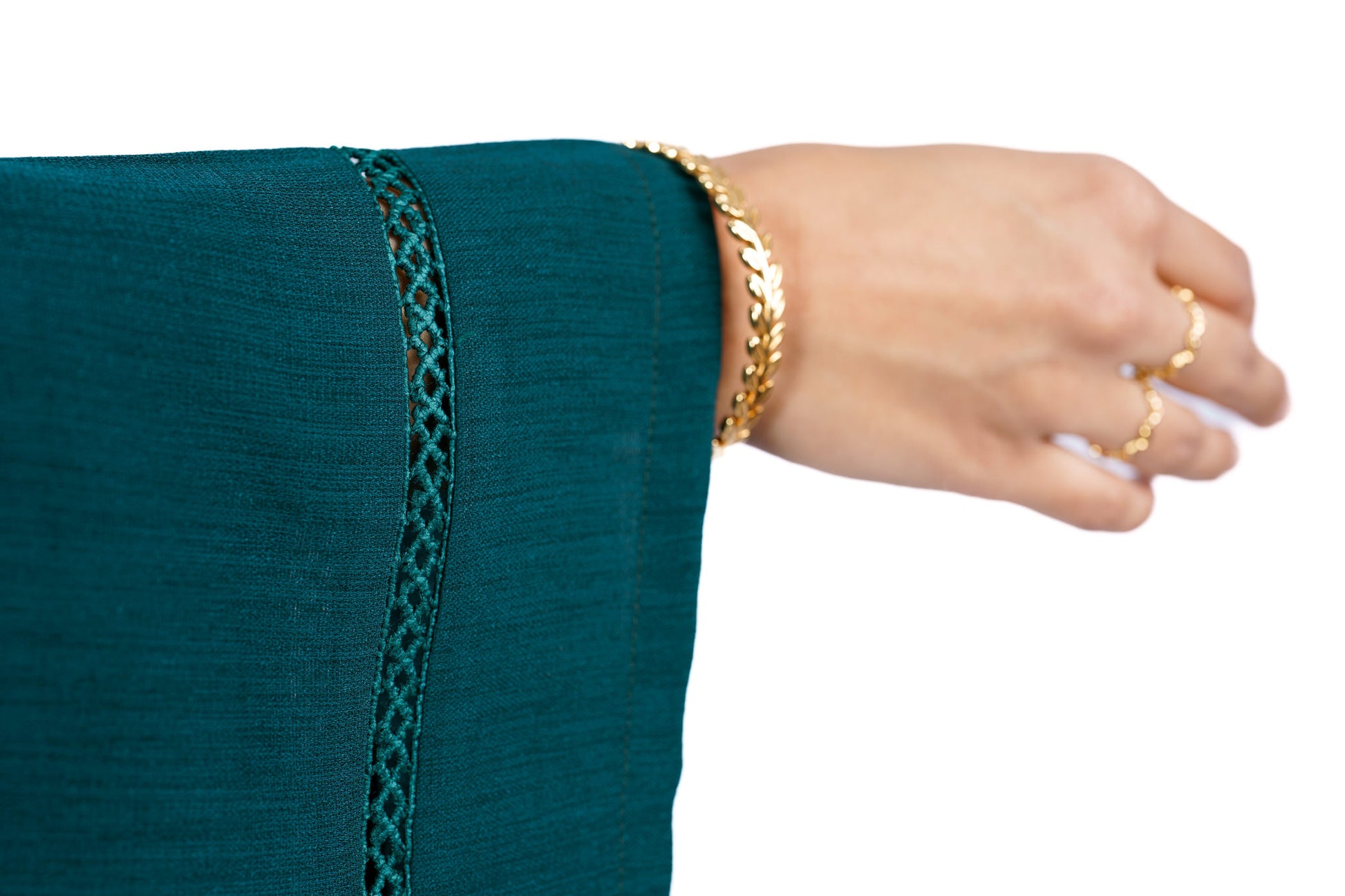 A modest set that brings style and comfort together. This 2 piece set is perfect for your next beach getaway or even just a brunch with the girls. The open top gives a comfort fit and can be paried with a shirt. The pants have an elasticated waist on the back and band in the front to give you a clean look and did we mention it has pockets?! A beautiful teal lace runs the sleeves and the pants.